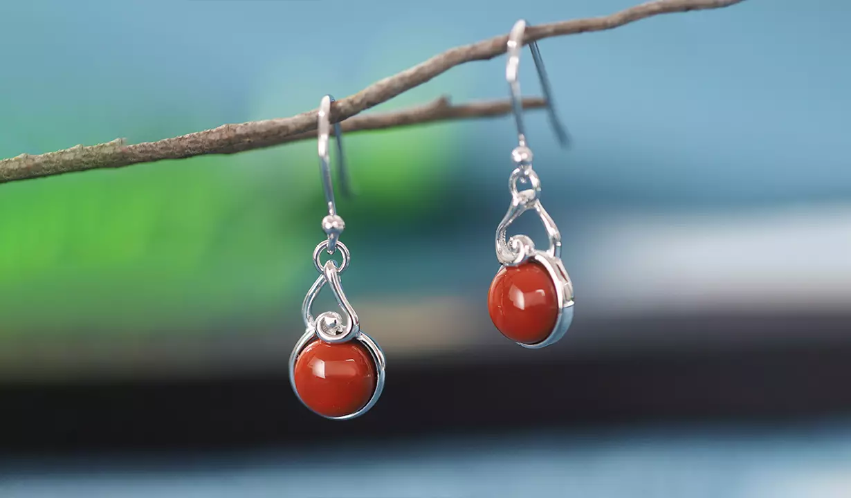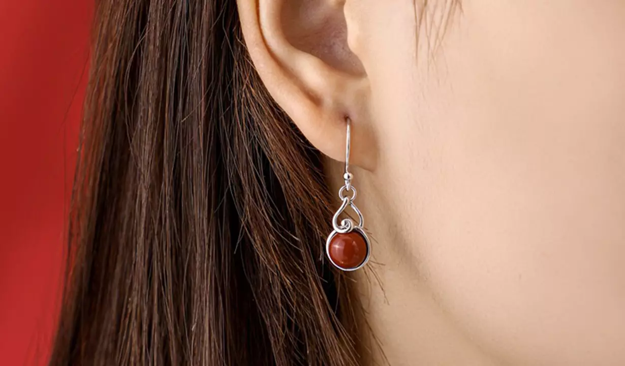The earrings are designed in vintage court style, combining elements of ancient aristocratic splendor and modern fashion to present a unique style and charm. Set with Southern Red Agate gemstones, Southern Red Agate is a rare variety of gemstones, it has a red agate texture and unique texture, adding a precious and noble flavor to the earrings.
