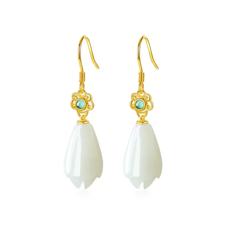ID:10030708099 weight: 4.18g Colour: 22K gold Material: S925 silver + Hetian Jade Earring size: 38*9mm Jade size: 17 * 9