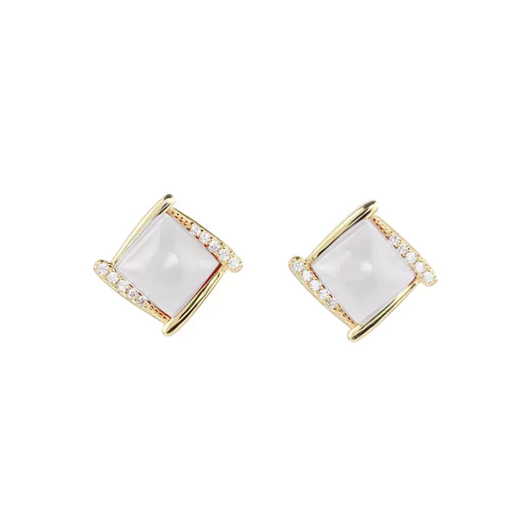 ID:10030708099 weight: 3.8g Colour: white gold gold Material: S925 silver + African Jade Size: 14*14mm