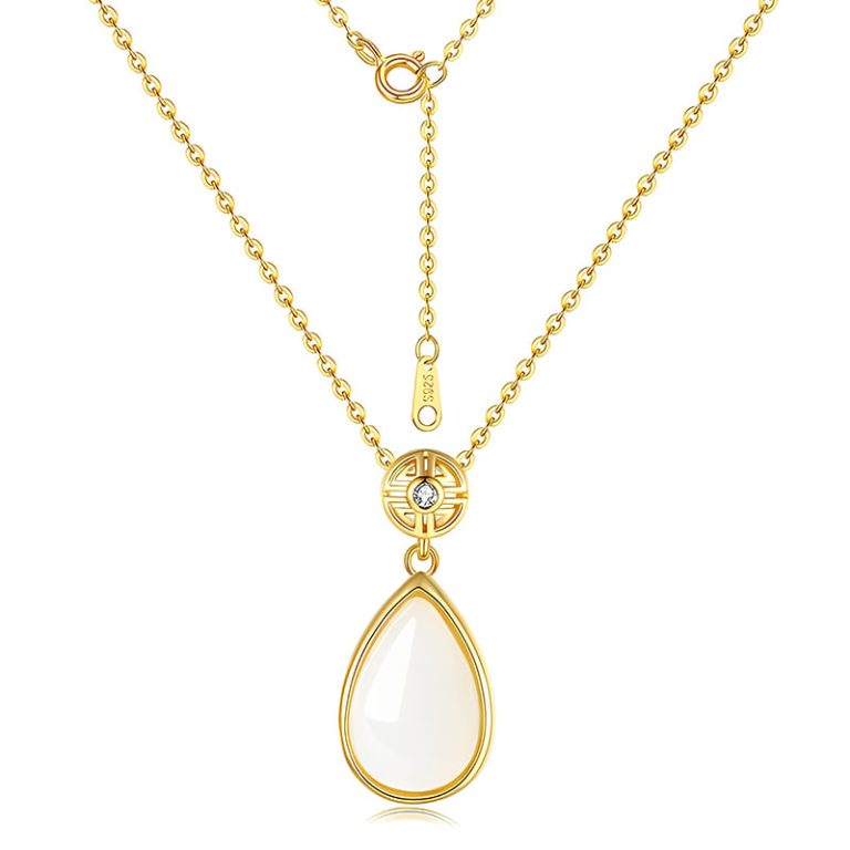 ID:10050708083 Necklace length: 45cm weight: 2.52g Colour: white gold gold Pendant size: 21.6*9.6mm Main material: S925 sterling silver, natural Hetian jade