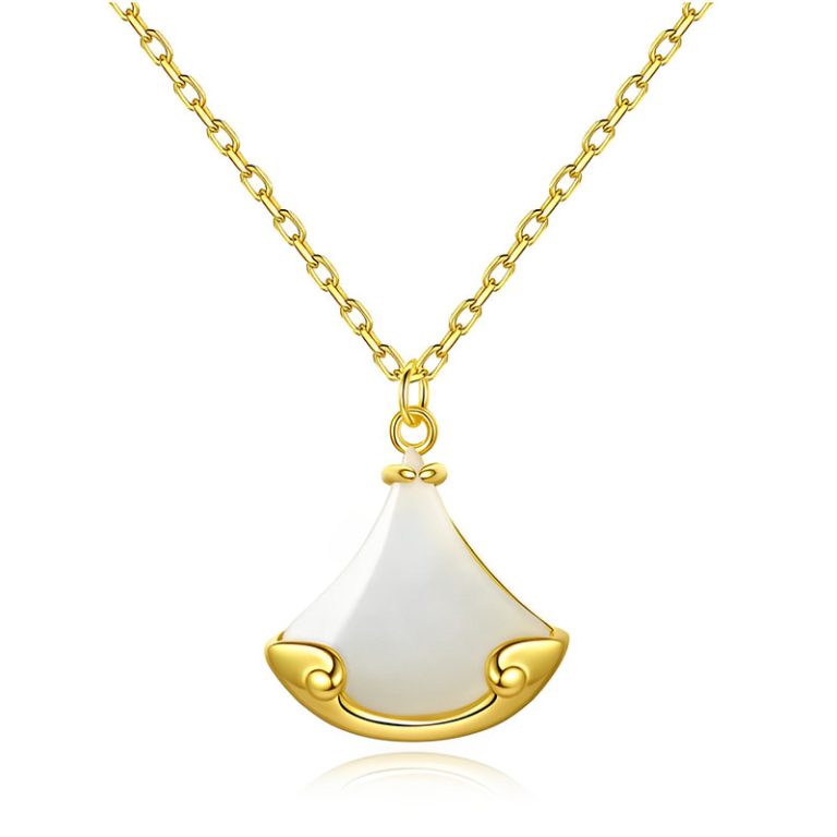 ID:10050707101 Necklace length: 45cm weight: 2.1g Colour: white gold gold Pendant size: 14.7*11.6mm Main material: S925 sterling silver, natural Hetian jade