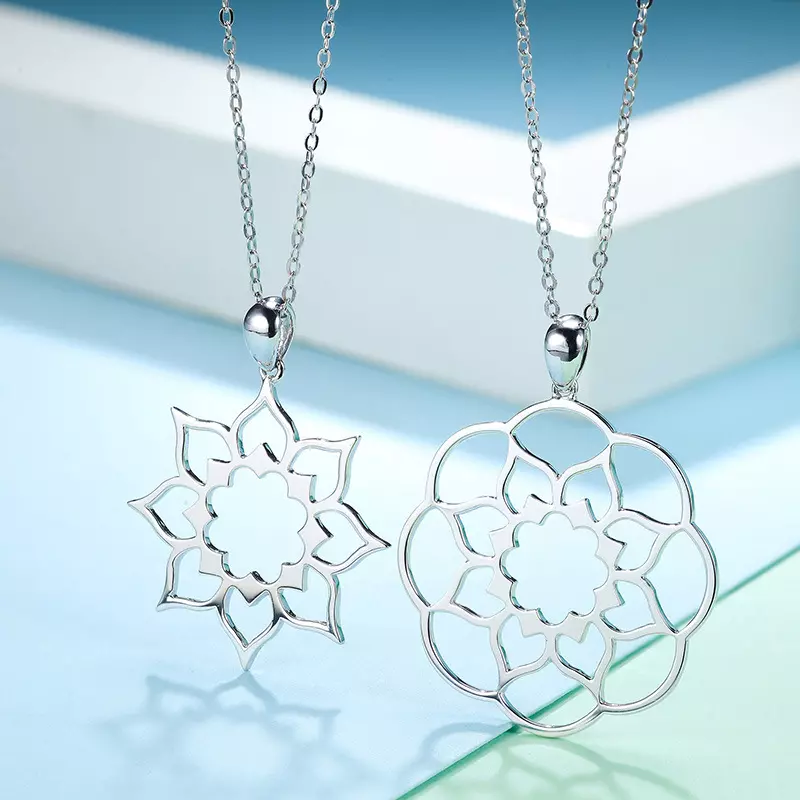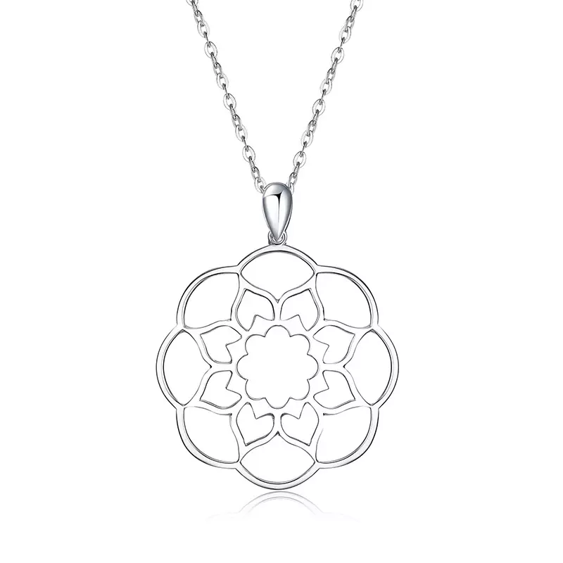 Love flower pattern platinum pendant, 8 flower heart surrounded by flowers, fashionable and versatile, elegant atmosphere