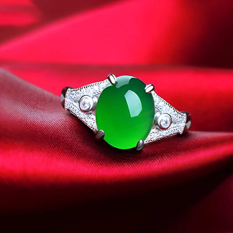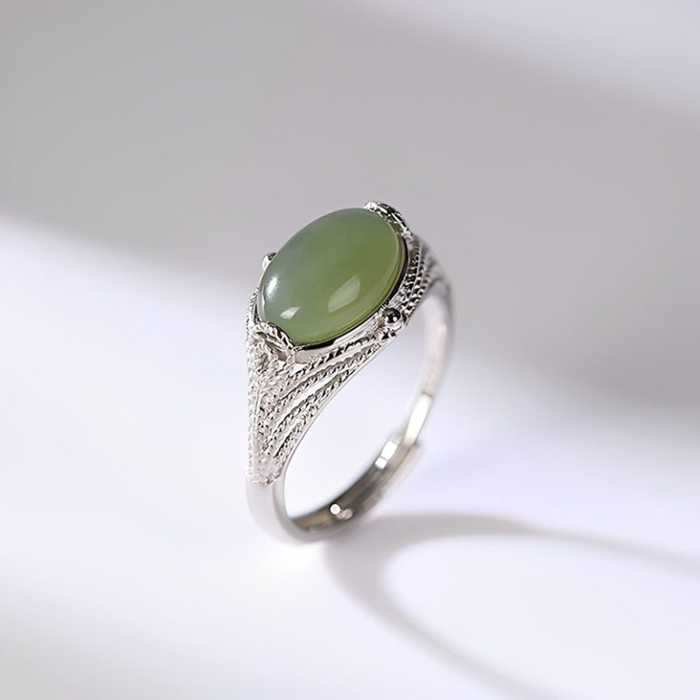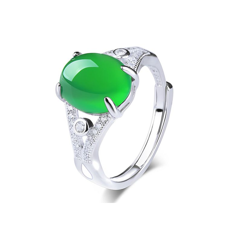 ID:10010720077 Jade size: 8*12mm Ring size: ring Width 3mm ring thickness 2mm Weight: 4g Ring size: Adjustable Colour: white gold Material: S925 silver…