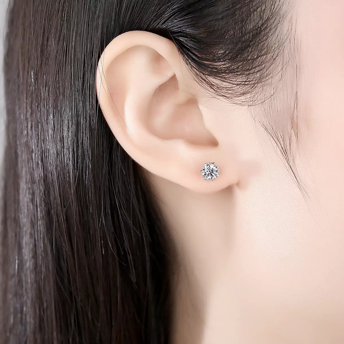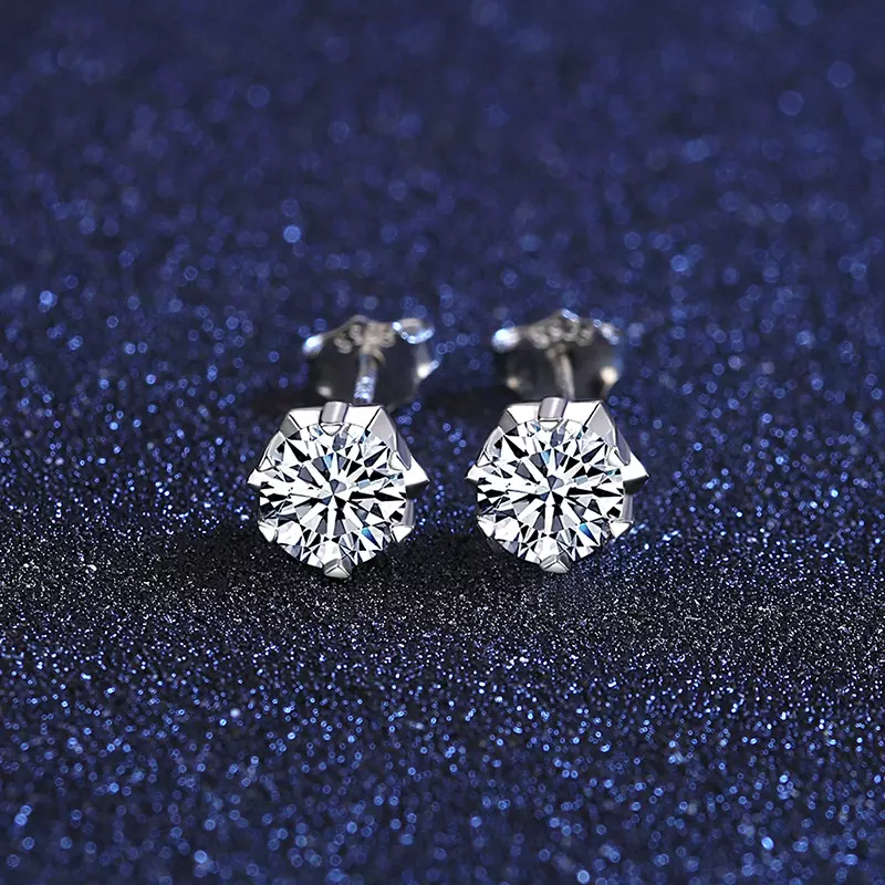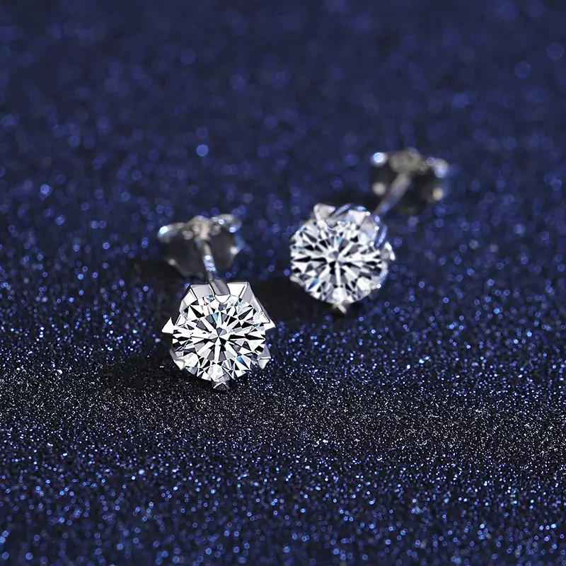 S925 Silver 5.0mm Six Claw Snowflake Moissanite Earrings