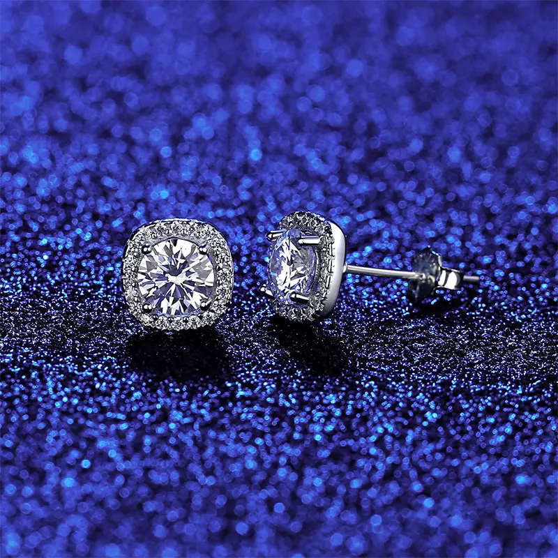 S925 Sterling Silver 5.0mm Square Moissanite Earrings